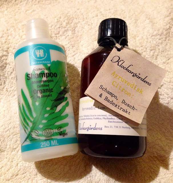 Nu har jag börjat använda schampo igen sen några månader men behöver inte alls tvätta håret lika ofta. Håret känns toppen och börjar det bli torrt igen kör jag en balsamkur igen, inbillar mig att håret känns annorlunda både beroende på årstid och hur man mår. Hur som helst så fortsätter jag att testa mig fram bland lite olika märken och upplever att det är skönt att byta ibland även om produkten känns bra. Just nu vilar Klockargården till förmån för ett gammalt hederligt Urtekram schampo, smidigt då andra delen av familjen använder det med. Har länge kört med olika Faith in nature som fungerade bra som "tvättbalsam" för mitt hår. Testade Treemendus Organic Tea tree conditioner, men tycket den var för rinnig och inte gav den mjukhet jag är van, luktade dock mycket gott. Däremot blev jag förtjust i Naturligtvis Balsam för torrt hår. Innehåller åkerfräken, luktade så där "naturligt rent", mer den konsistens jag vill ha och håret kändes fint efteråt. Dessutom är det vad jag förstått ett svenskt märke vilket gör att det känns ännu bättre!